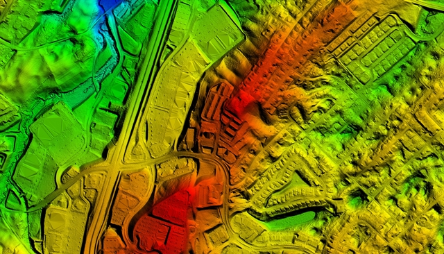 Topographic surveys of smaller parcels are based on field measurements, and larger parcels on aerial photography. When aerial photography is used, field measurements are made at critical features, such as the edge of pavement and on site infrastructure. Mapping is provided in AutoCAD format, with identifying features including line work, text, and symbols on their individual layers. The mapping will show all visible improvements, roadways, structures, etc. with a specified contour interval, and spot elevations on all flat surfaces and improvements, including rims and inverts on all sanitary and drainage structures. Spot elevations are generally to the nearest 0.01-ft on hard surfaces and 0.1-ft on soft surfaces. All vertical data will be based on an agreed upon datum, such as the North American Vertical Datum of 1988.